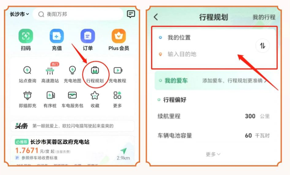为了合理安排高速出行充电,大家出行前可以在e充电APP上,通过“行程规划”功能,输入出发地和目的地,即可为大家展现路途中的充电站分布情况,大家可以根据车辆电量合理规划充电。