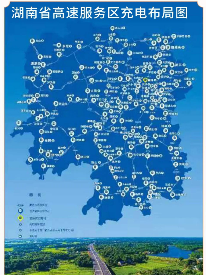 湖南境内高速服务区充电站详见下图。(图来源:湖南高速新能源)