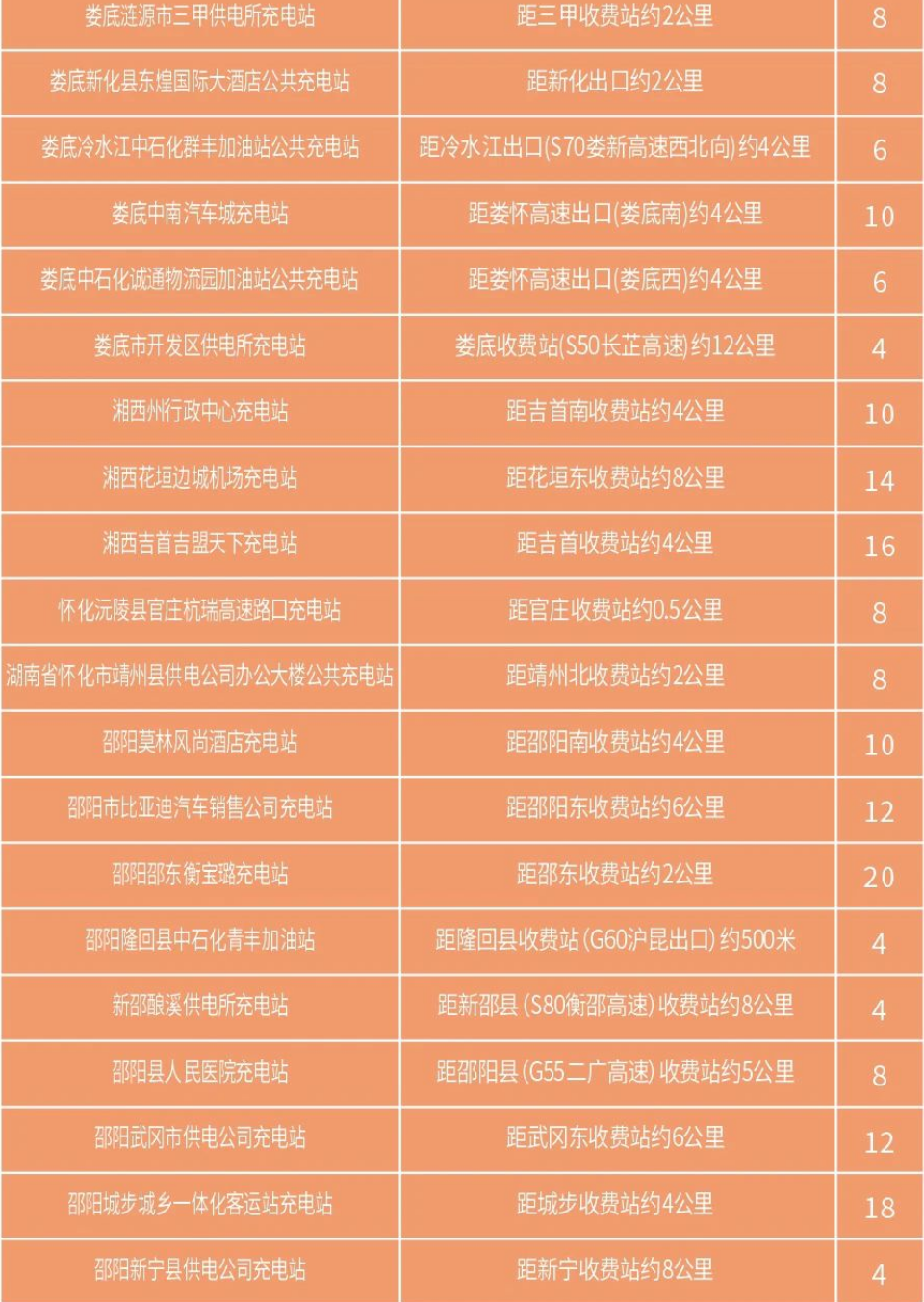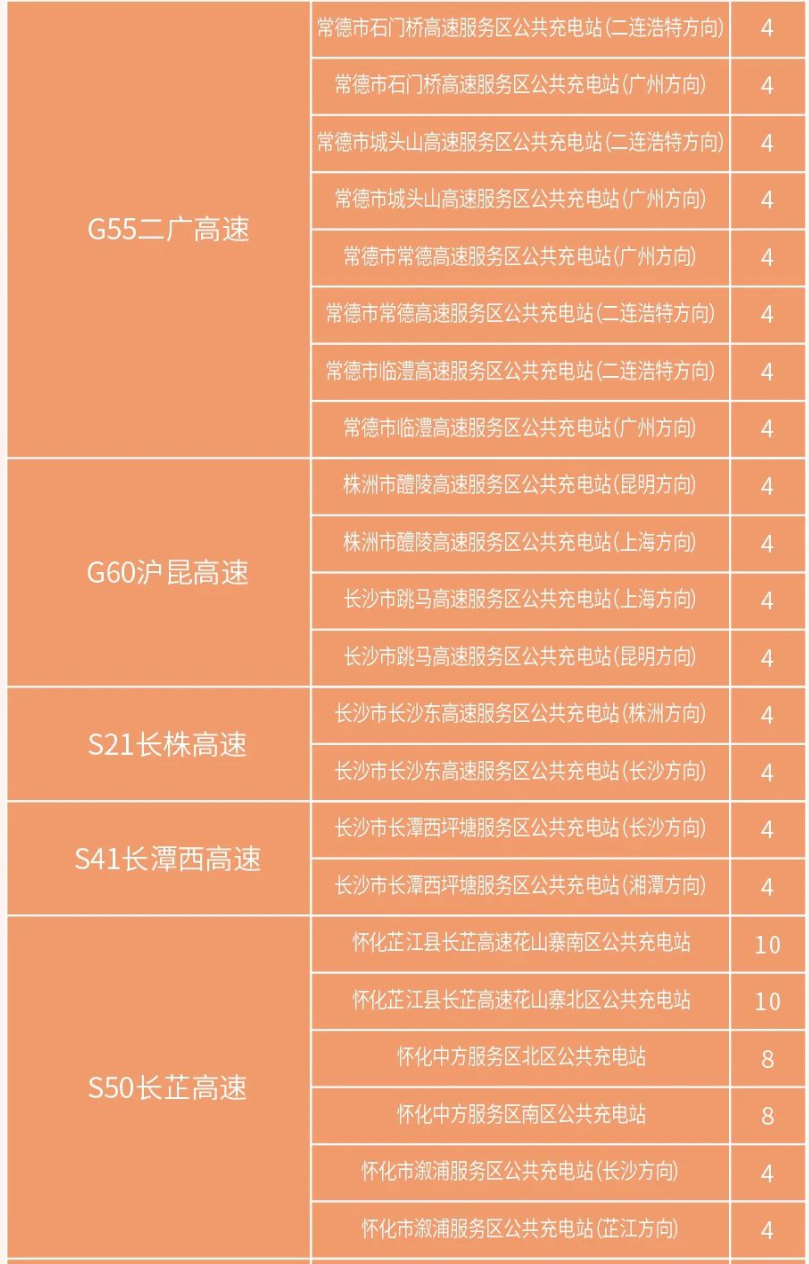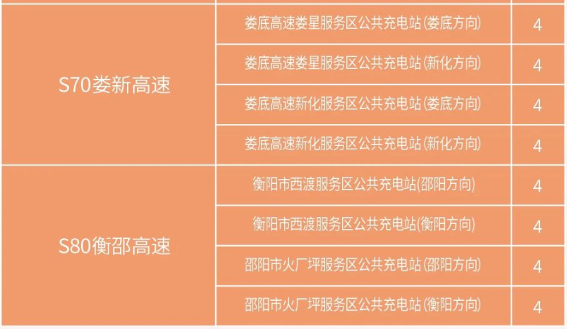 娄新高速共有新化、娄星两个服务区4座充电站16把充电枪;