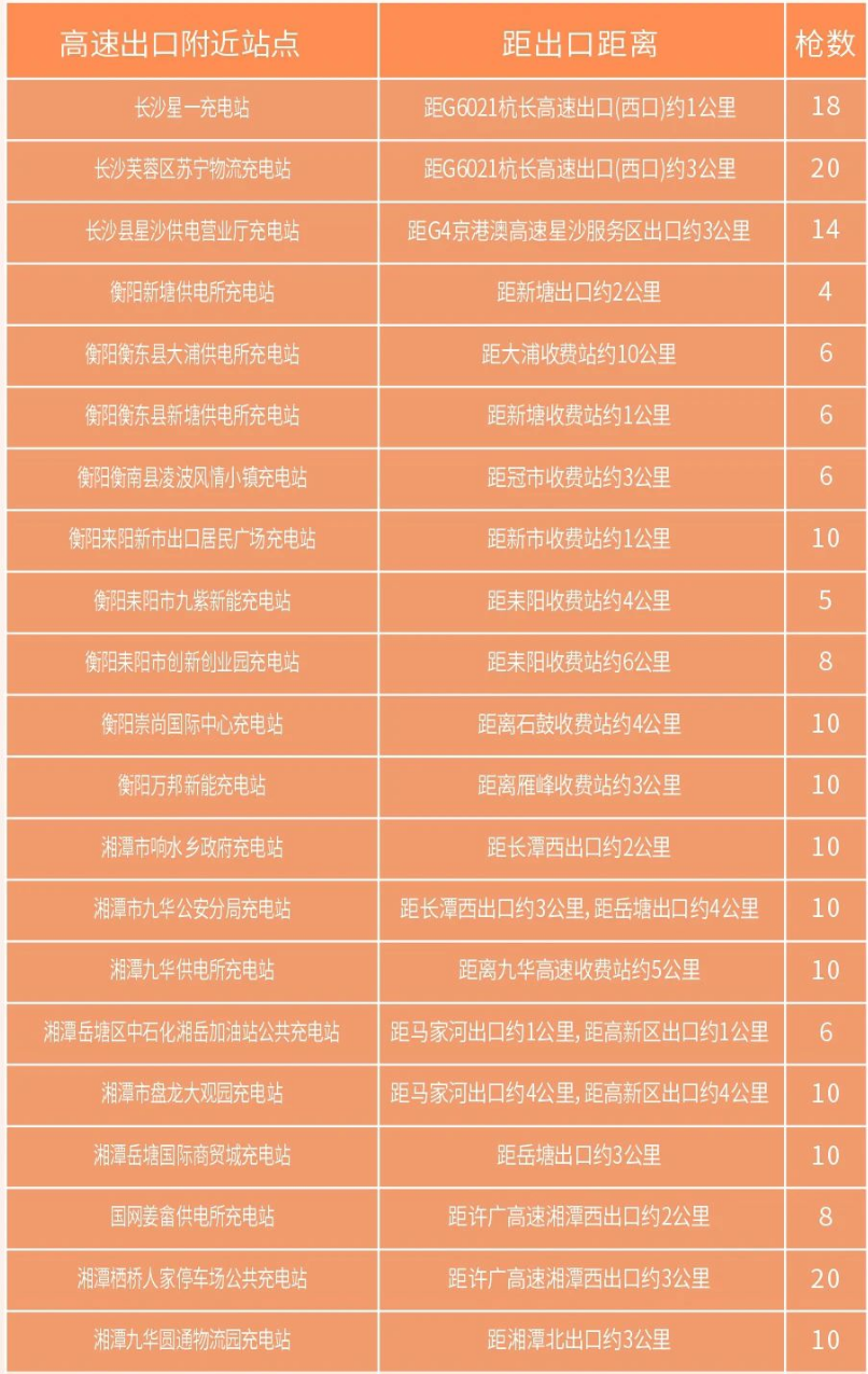 沪昆高速有长沙跳马、株洲醴陵两个服务区4座充电站16把充电枪。