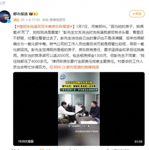 情侣洗完澡双双中毒房东称是晕堂,律师:房东要负全责或主责