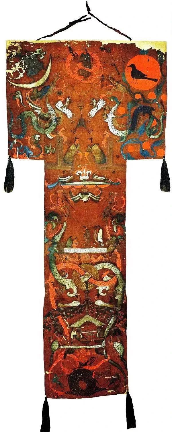 △辛追墓T型帛画,上部有“人首蛇身”人物。