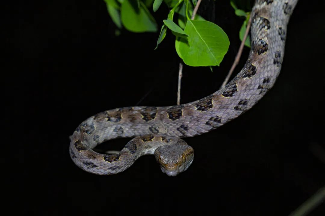 捕蛇者不顾生命危险的追捕并没有让异蛇陷入濒危的境地,真正陷入濒危的是“小青龙”——莽山烙铁头,即使被瑶族人奉为神物。这是湖南特有的物种,野外种群仅存300~500条,且分布区极狭小,目前只在郴州莽山地区一带发现,所以,也有“蛇中熊猫”之称。
