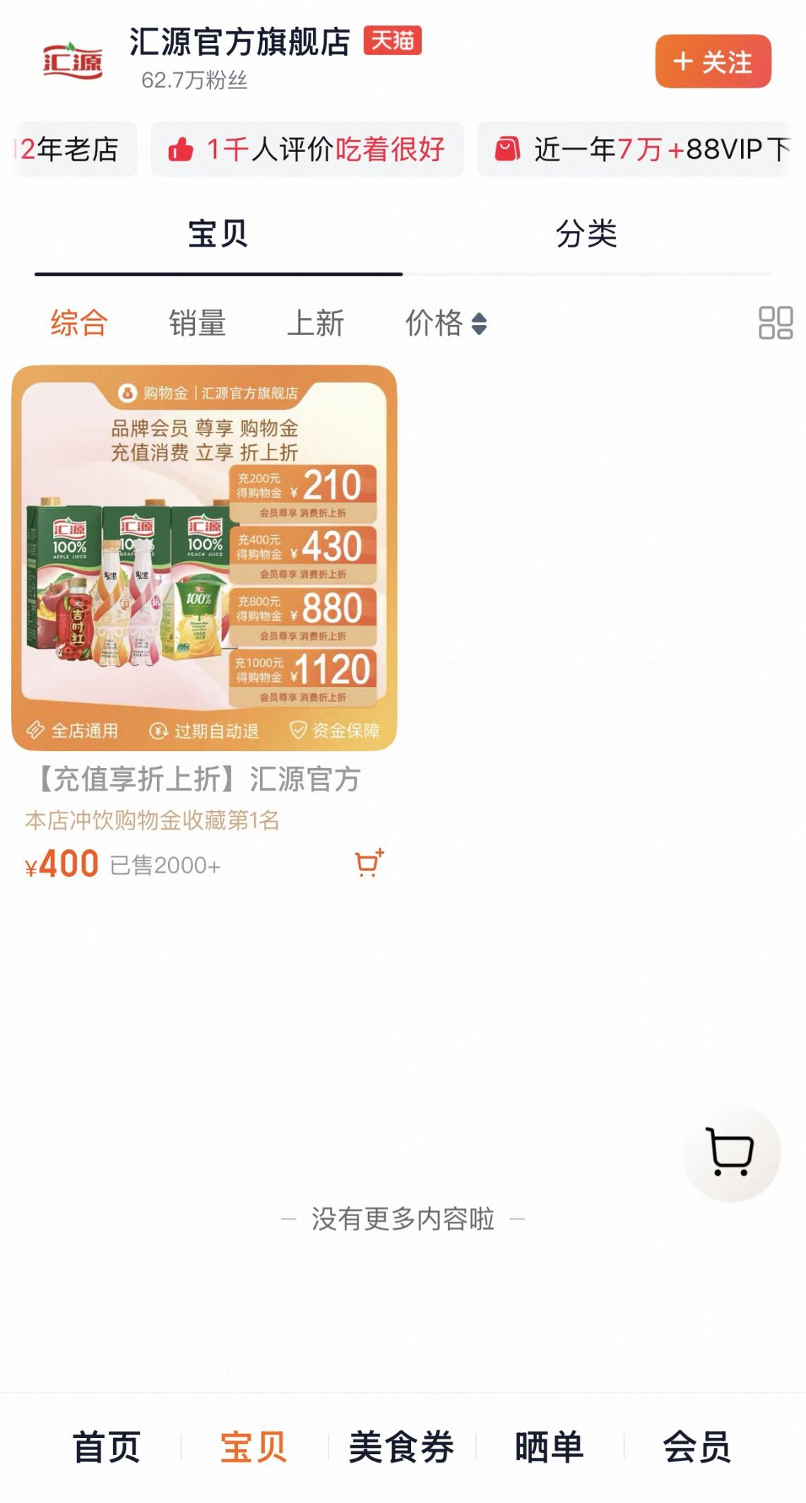 △汇源天猫官方旗舰店已停售产品
